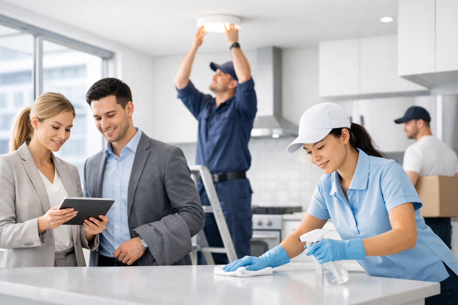The key? Different teams working different areas simultaneously. Your cleaning crew doesn't need to wait for paint to dry in the bedroom to clean the bathroom.