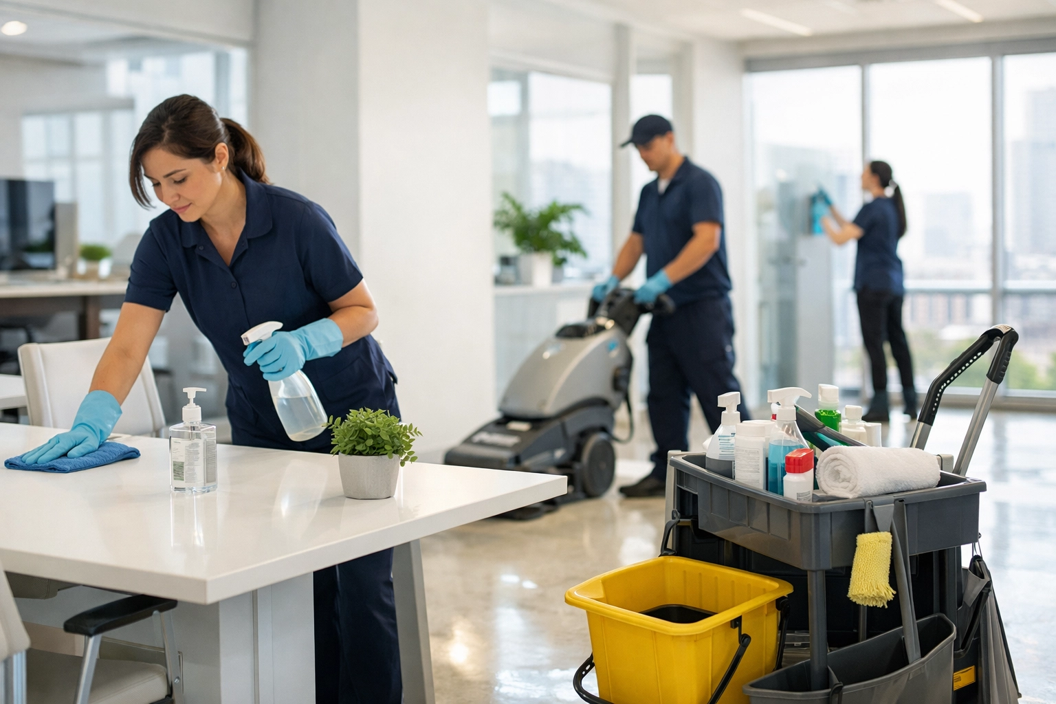 One of the biggest hurdles for Office Managers in major hubs like Chicago and Indianapolis is scheduling. You cannot have a floor buffer running while your team is on a conference call.