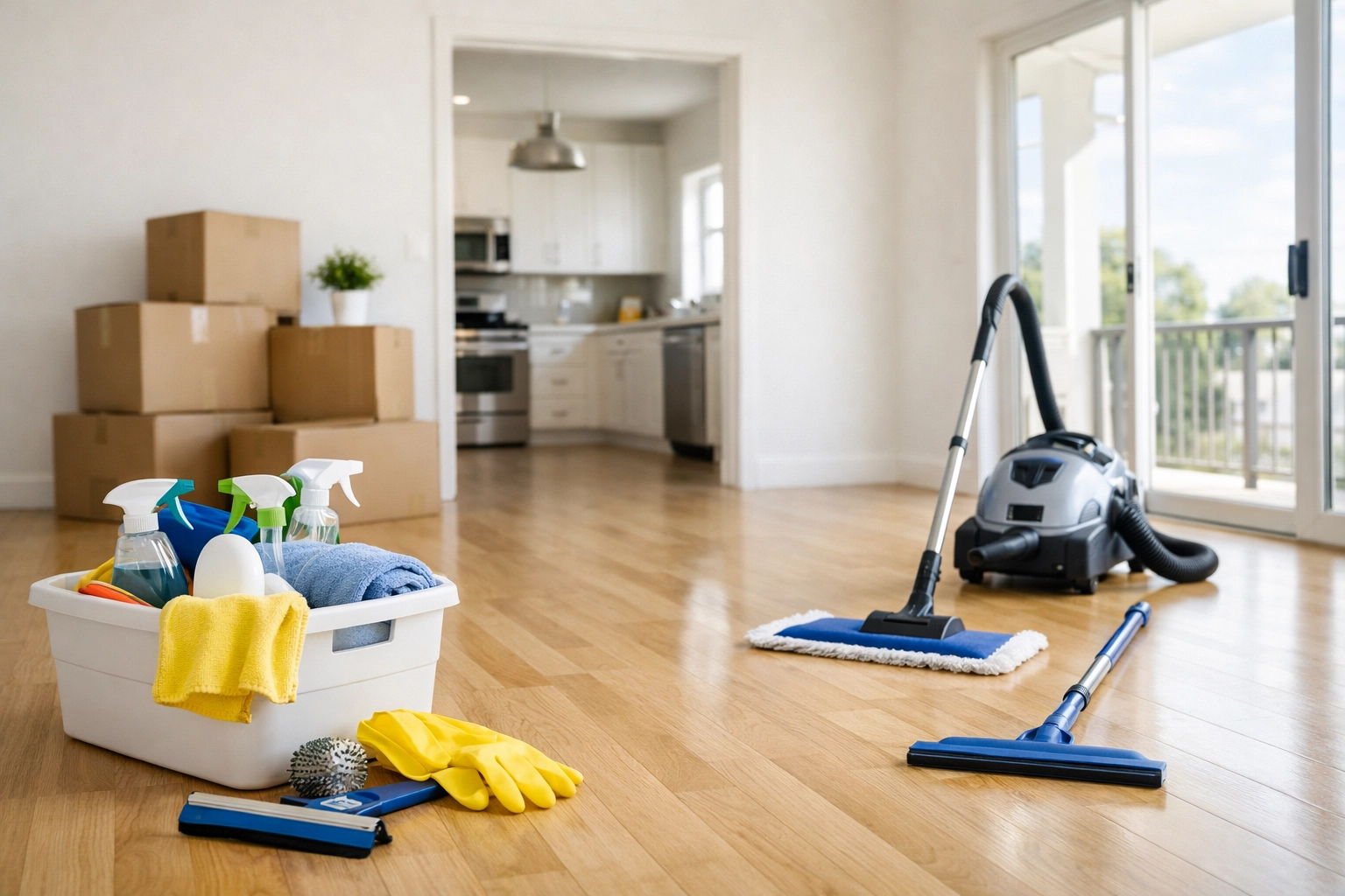 Image Prompt: A professional, organized cleaning kit featuring microfiber cloths, a HEPA vacuum, and eco-friendly supplies neatly arranged on a polished floor. Professional aesthetic, neutral tones.