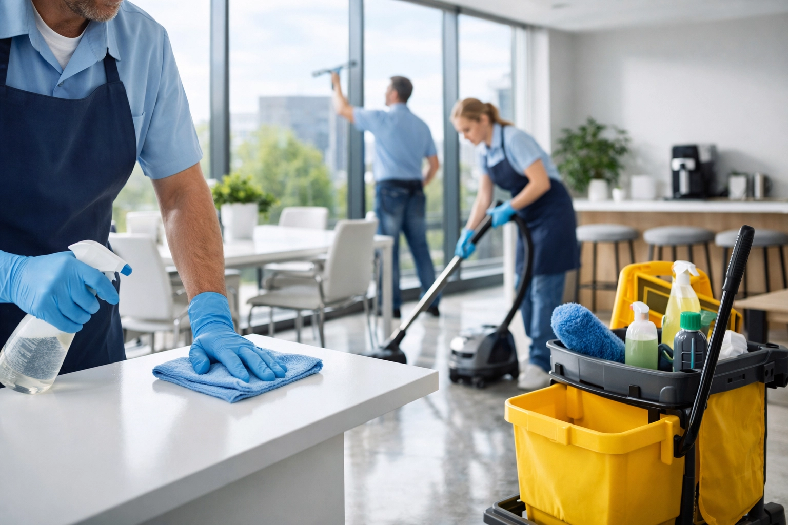 - Full Floor Care: Vacuuming high-traffic carpets and mopping hard surfaces with pH-neutral cleaners.