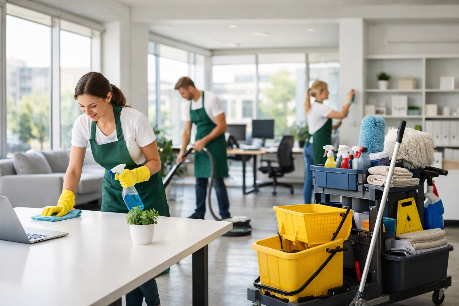 - Surface Care: Dusting and wiping down desks, conference tables, and reception counters.